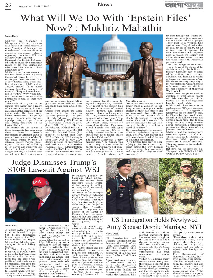 শুক্রবার, ১৭ এপ্রিল ২০২৬